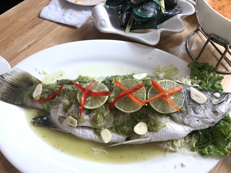 ปลากระพงนึ่งมะนาว เป็นอีกจานที่แนะนำให้สั่ง ถ้าเบื่อปลาทอด ปลาสดดี ขนาดมาตรฐานราวๆ 8 ขีด แบบที่ร้านทั่วไปใช้กัน อยากจะซ้ำ แต่กลัวกินไม่ไหว