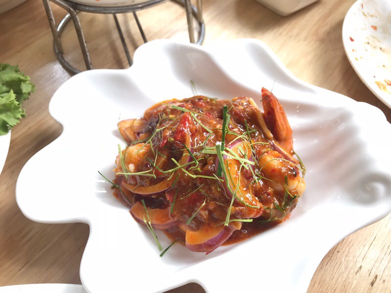 พล่ากุ้ง อีกจานที่โอเค รสออกหวานหน่อย ตามแบบฉบับของพล่าสมัยนี้ที่ต้องออกรสหวาน กุ้งตัวใหญ่ดี ซ้ำได้