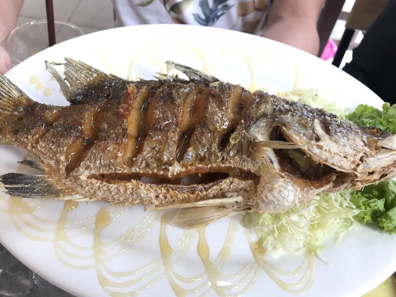 ปลากระพงทอดน้ำปลา ไซด์มาตรฐาน ทอดมาได้ดี กรอบนอก เนื้อข้างในดี ราดน้ำปลาหวานมาให้ ติดตรงที่ไม่มีน้ำยำมะม่วงมาด้วย แต่กินกับน้ำปลาหวานที่ราดมา ก็โอเคครับ