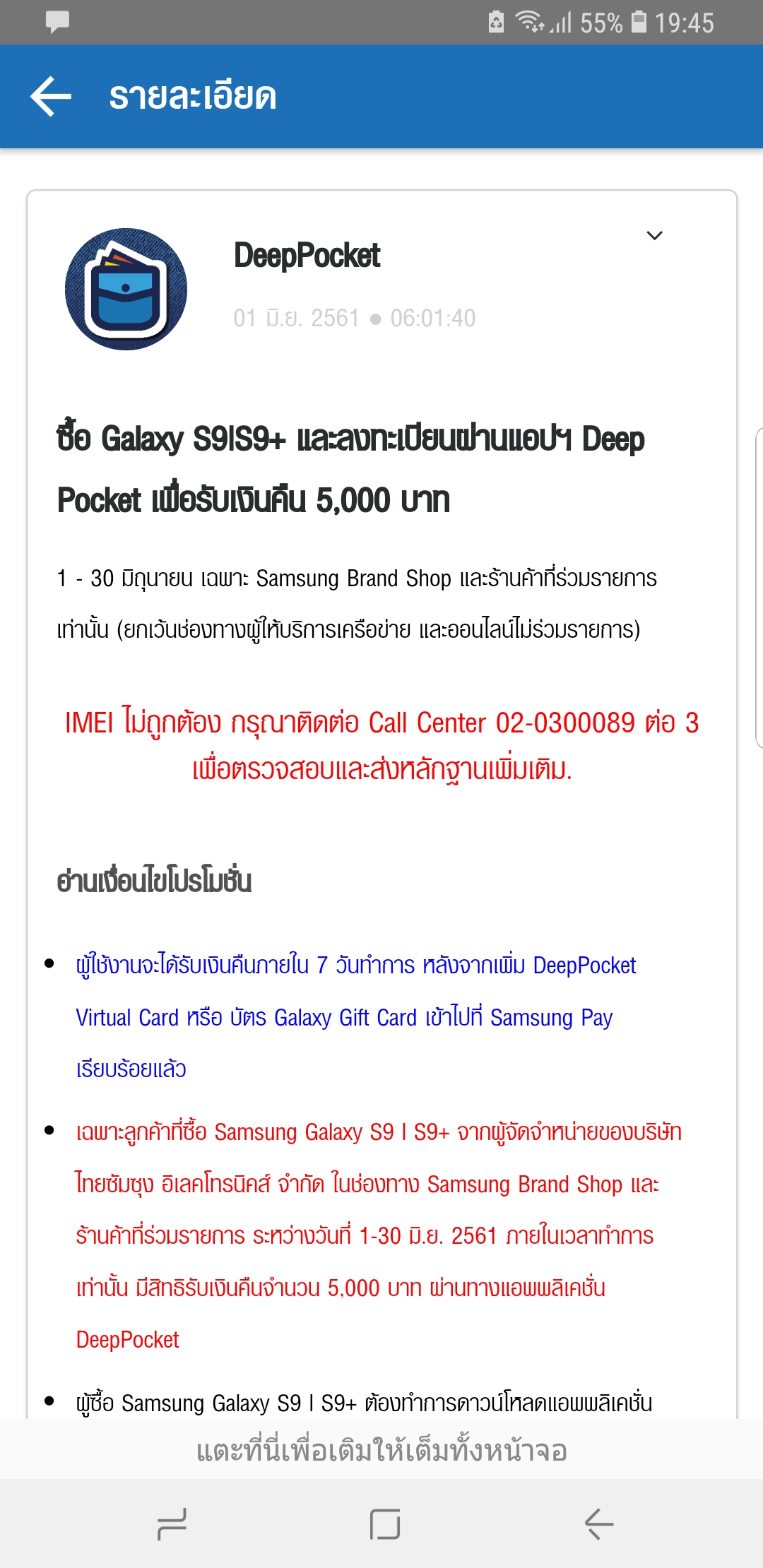 ลงทะเบียน deep pocket เสร็จแล้ว แต่พอกดรับสิทธิ์ ไม่ได้ค่ะ ขึ้นแบบนี้หมายความว่ายังไงคะ