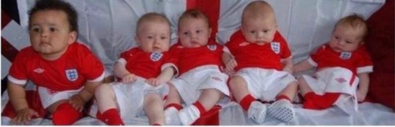 พอคลอดเลยชวนกันถ่ายรูปหมู่ลูก ๆ ในชุดทีมชาติอังกฤษ ในช่วงฟุตบอลโลก 2010 ที่แอฟริกาใต้เป็นเจ้าภาพ