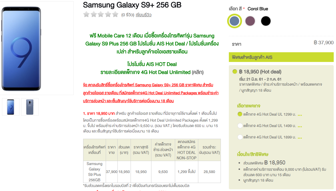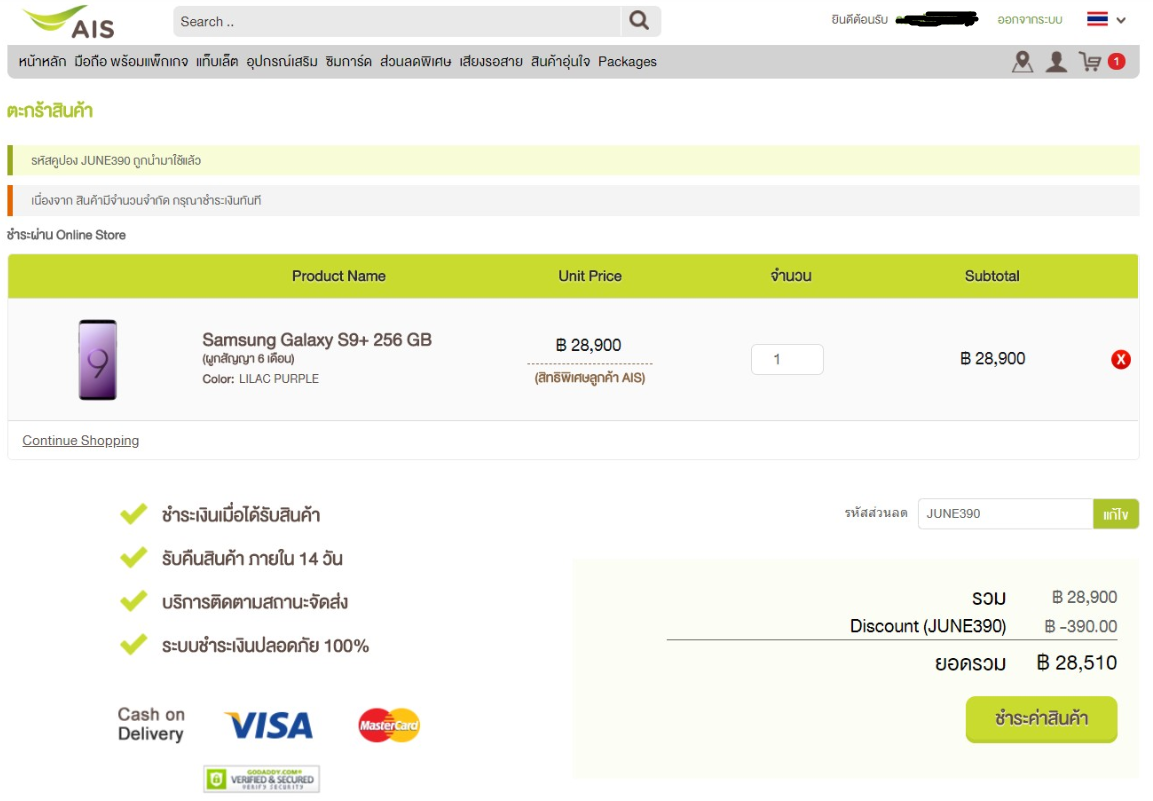 วันนี้ผมว่าจะสั่งซื้อ Samsung Galaxy S9+ จากออนไลน์สโตร์ของ ais