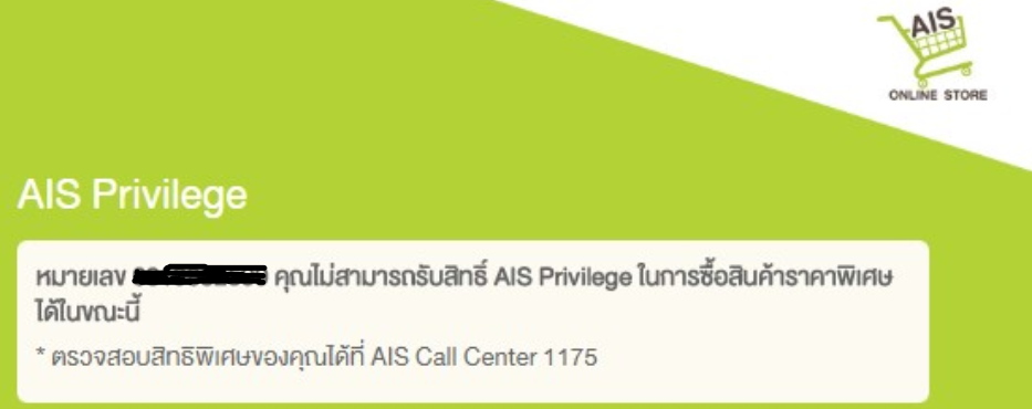 กดสั่งซื้ออยู่หลายครับก็ขึ้นคุณไม่สามารถใช้ AIS Privilege