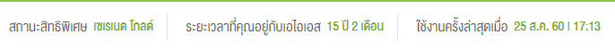 เงื่อนไขรับสิทธิ์ อ่านดูแล้วข้อนี้คิดว่าผ่าน เซเรเนด Gold อยู่ร่วมกันมา 15 ปี 2 เดือน