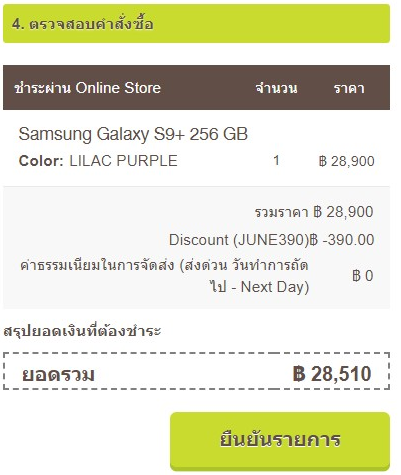 ทำรายการไปโดยซื้อเครื่อง S9+ 256GB ทำรายการสั่งซื้อโดยปกติครับพอจะชำระค่าสินค้า