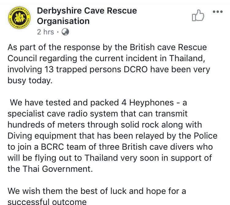 3 นักดำน้ำอาชีพ มากประสบการณ์ดำน้ำสำรวจ ออกเดินทางจาก London แล้ว มุ่งหน้า ประเทศไทย เพื่อไป ช่วยดำน้ำค้นหา ทีมนักฟุตบอลเด็ก ที่ถ้ำหลวง เชียงราย...จะถึง กรุงเทพฯ18.20 น. วันนี้