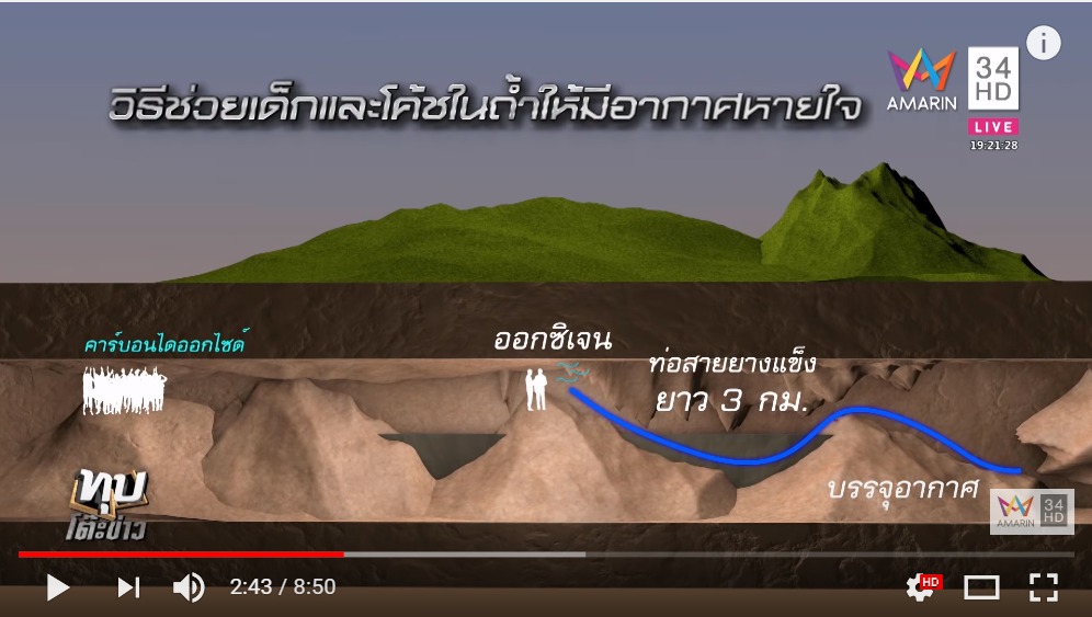 ถึงปากถ้ำจะยังมีอากาศ แต่ยิ่งลึกอากาศยิ่งเบาบางมาก อ.อ๊อดได้แนะนำให้ต่อท่อออกซิเจนเข้าไป เพื่อให้เด็กและเจ้าหน้าที่มีอากาศหายใจ