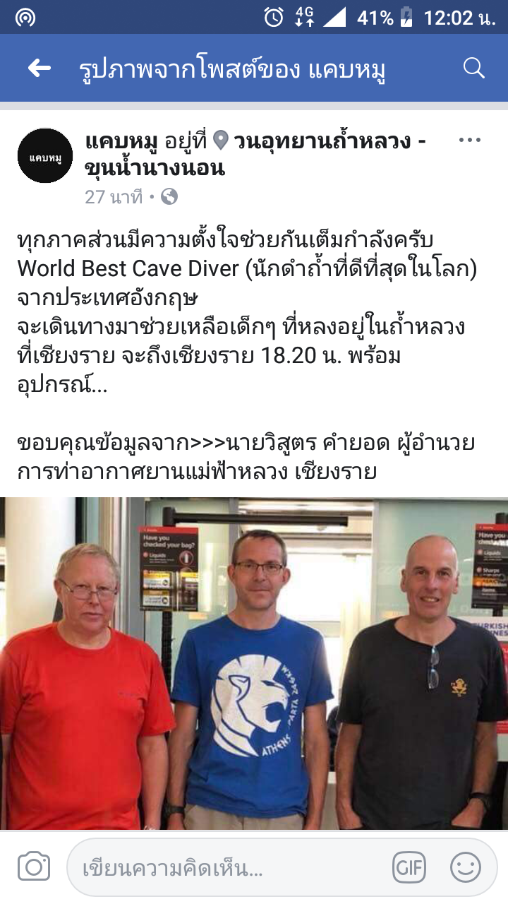 เมื่อครู่ดูช่องเนชั่น 22 รมต. พล.อ.อนุพงษ์ บอกว่า.. นักดำน้ำถ้ำจากอังกฤษที่จะมาถึง เค้าเคยดำถ้ำนี้มาเเล้วด้วย