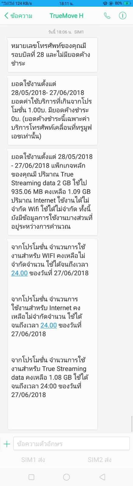 พอดีว่ามันถึงวันตัดบิลแล้ว แต่ไม่มีบิลหรือ SMS ส่งมา เลยเช็คค่าบริการทาง SMS ขึ้นมาแบบนี้อ่ะ