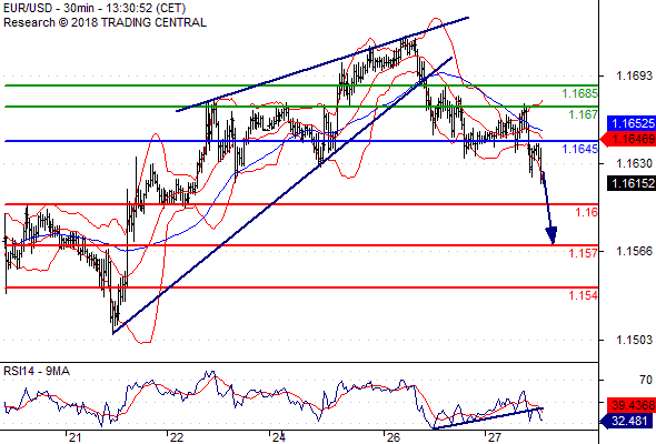 จุดที่ต้องการ: สถานะขายต่ำกว่า 1.1645 เป้าหมายต่อไปที่ 1.1600 และ 1.1570