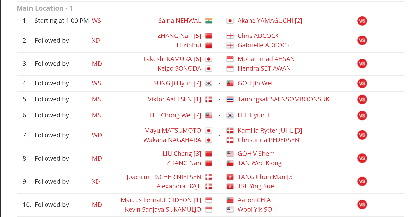 อาจจะรู้สึกผิดหวังเล็กน้อยนะครับกับการวางโปรแกรมของทางมาเลเซียนะครับ บางคู่ไม่ค่อยน่าดูเท่าไรอย่างคู่เควินเหมื่อนได้อานิสงค์จากเจ้าภาพเลยได้ลง ถ้าถามว่ามีคู่ไหนน่าสนใจก็คู่ 3 กับ 8 น่าดูมากสายเก๋าเจอสายเร็วทั้ง 2 คู่