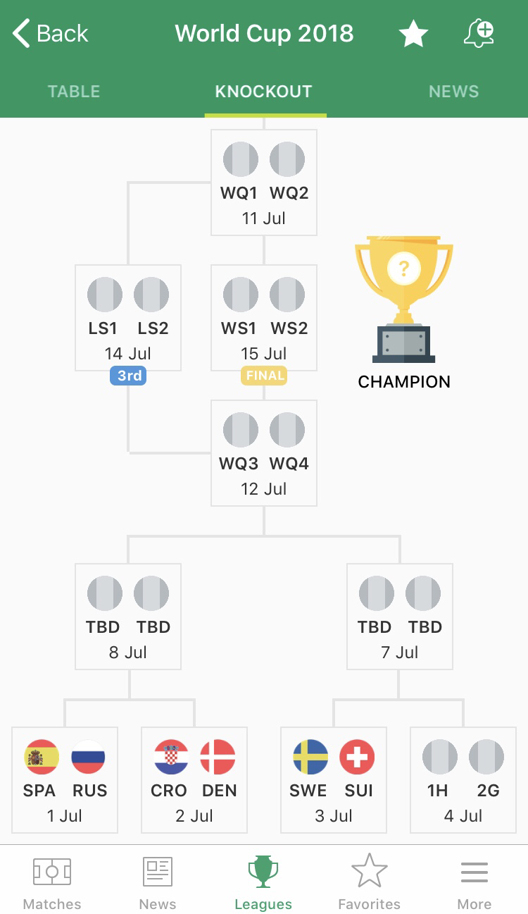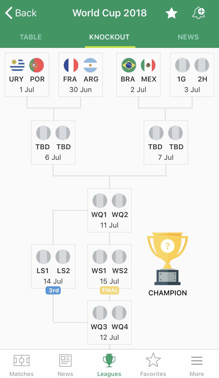 https://www.youtube.com/watch?v=6-xHujVW1W0 Group A 1. Uruguay 2. Russia Group B 1. Spain 2. Portugal Group C 1. France 2. Australia Group D 1. Argentina 2. Nigeria Group E 1. Brazil 2. Switzerla