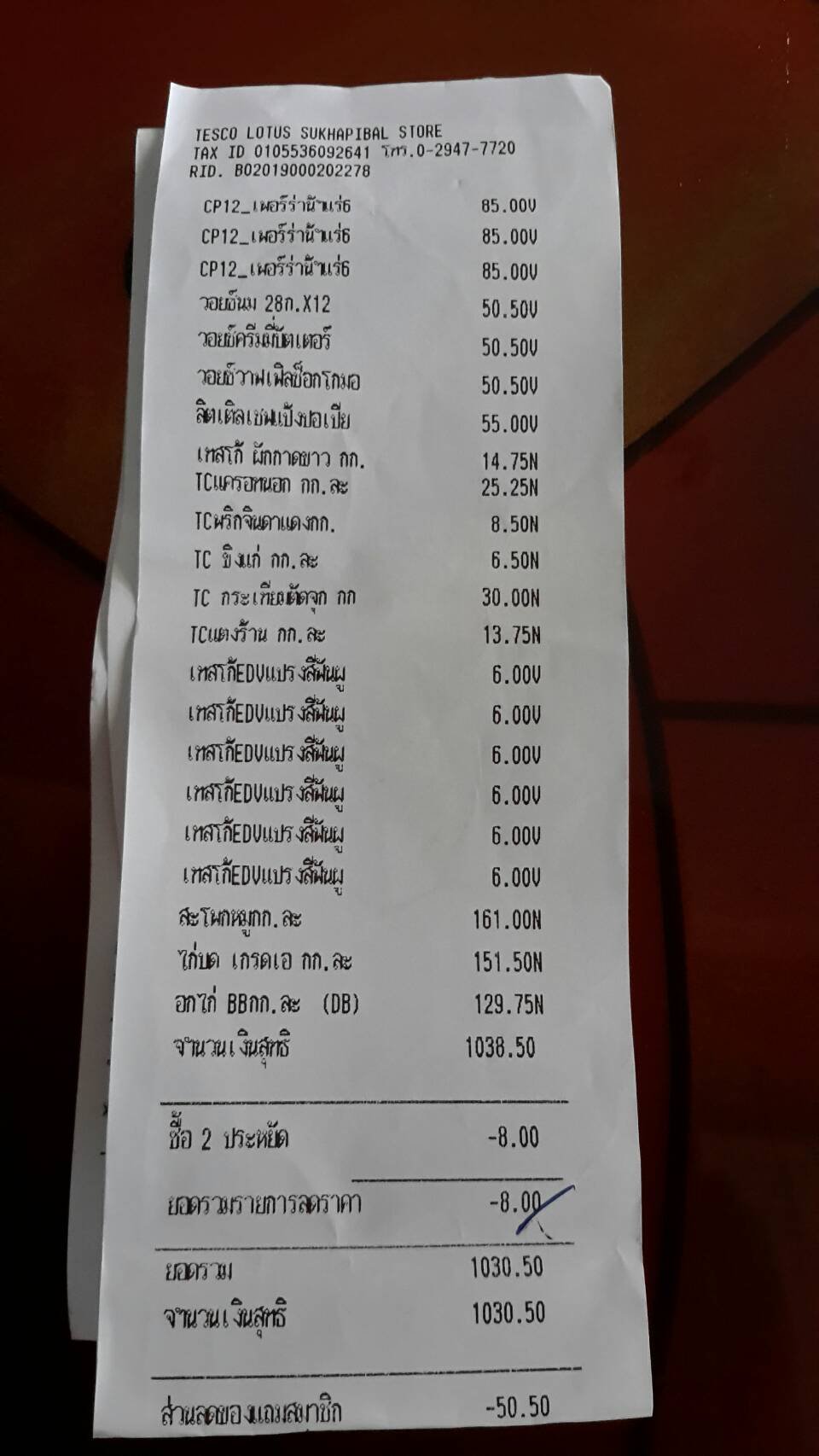 นี่ไงคะ ท้ายใบเสร็จลดให้ 8 บาท
