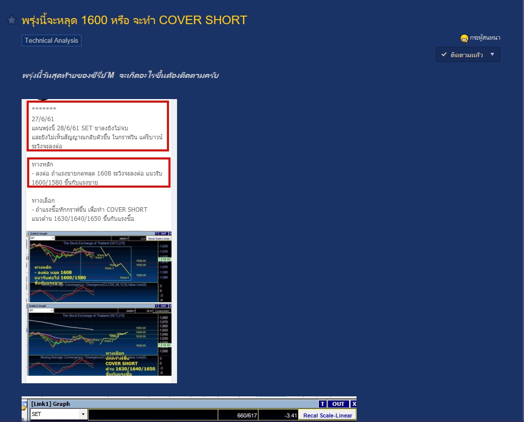 บอกแล้ว ว่าหลุด 1600 เพราะวันนี้ปิดที่ 1599.54