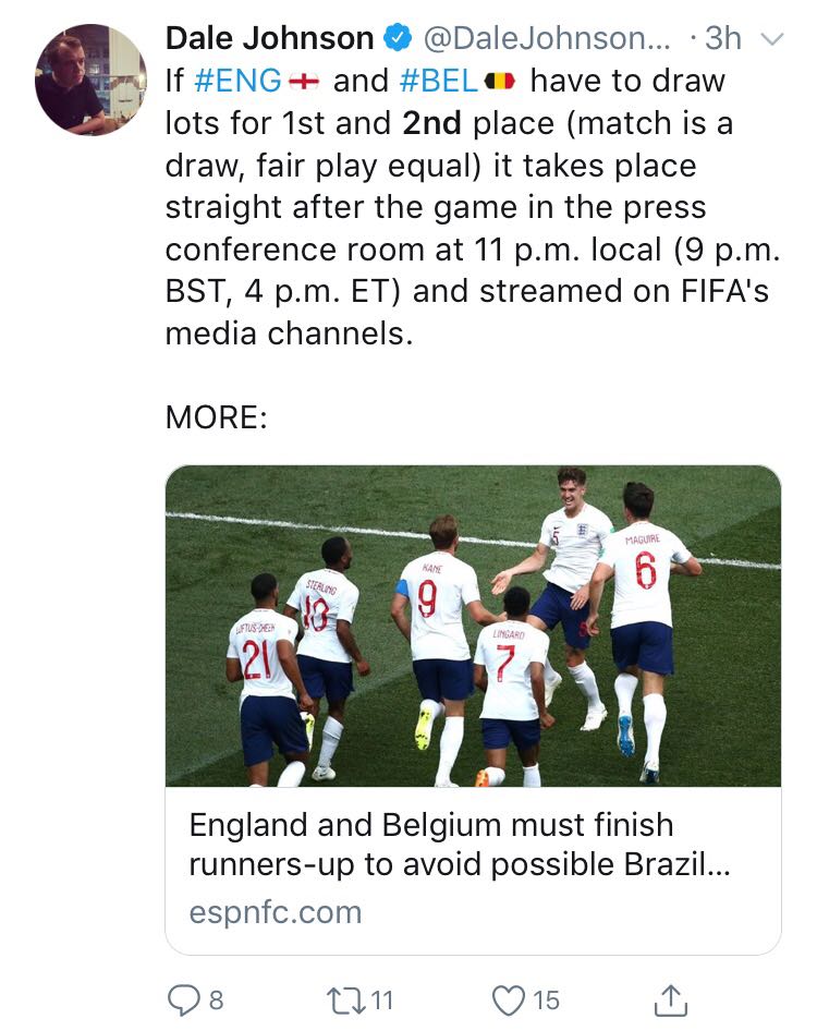 ENG vs BEL อาจได้ใช้กฏ fair play อีกรอบ หรือ ถึงขั้นจับฉลากเลยก็ได้
