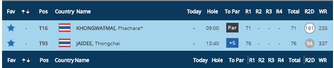 สกอร์พาร์วันแรกของโปรเพชร มีโอกาสผ่านตัดตัวเข้าไปเล่นสองวันสุดท้าย ส่วนโปรช้างคงต้องออกแรงมากหน่อย