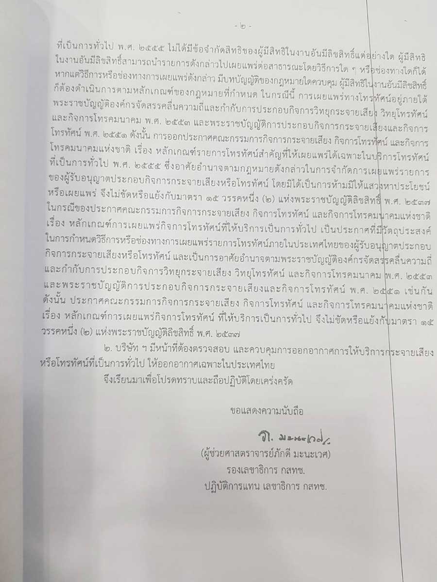 แถมยืนยันประกาศ กสทช.เจ้ากรรมสอดคล้องคำพิพากษาศาลปกครองสูงสุดที่ อ.215/2557 ไม่ขัดหรือแย้ง พรบ.ลิขสิทธิ์ พ.ศ.2537 ใดๆ