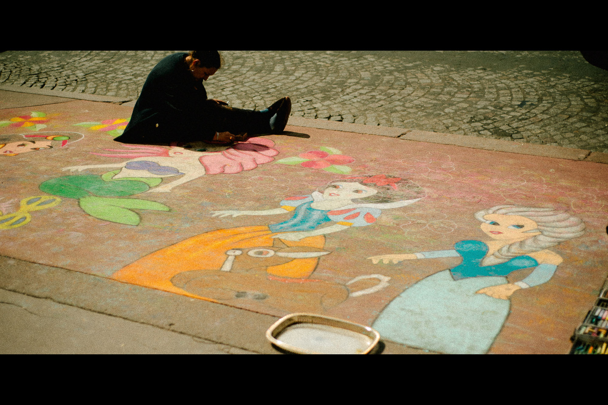 ตรงอีกด้านเค้าก็มานั่งวาดรูปเล่นบนถนนกัน ไม่ใช่นั่งหลับนะ