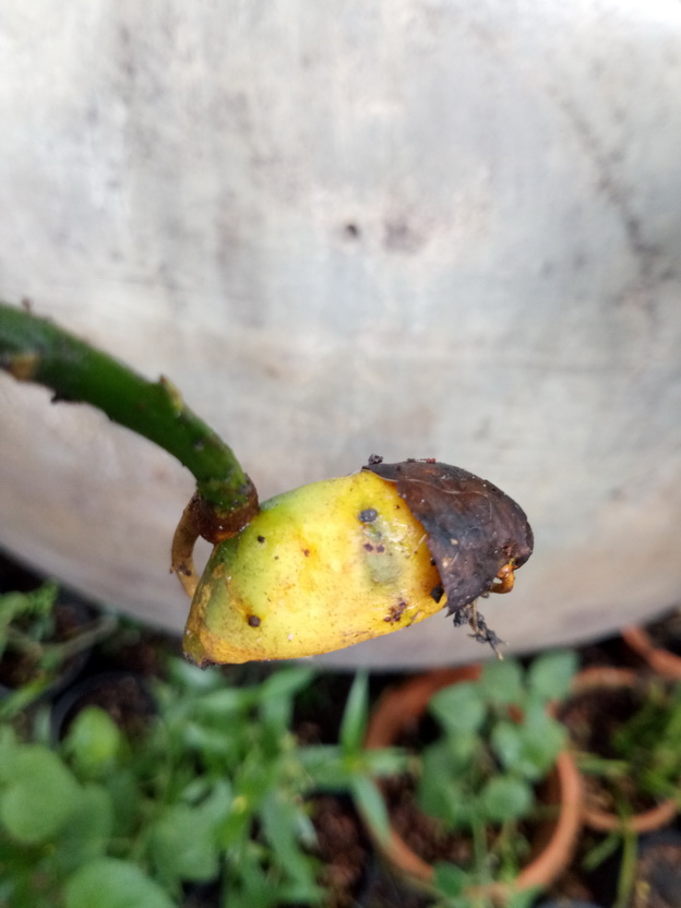(ยังไม่ได้ทิ้งดิน) ต่อมา ผ่านไป 2-3 เดือน ผมก็พบเจ้าต้นนี้งอกขึ้นมา