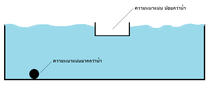 การลอยตัวของวัตถุใด ๆ ในน้ำ จะดูที่ความหนาแน่นของก้อนวัตถุนั้นเป็นหลักครับ