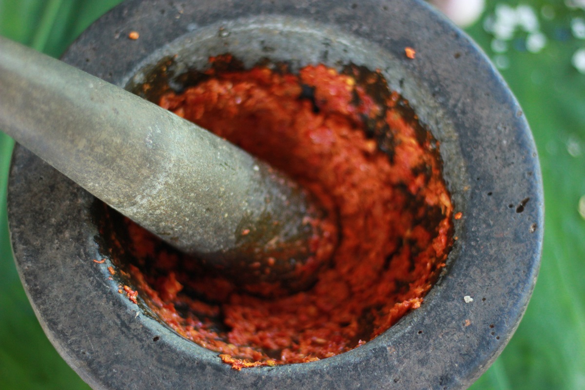 พริกสดพริกแห้ง เอาตามความชอบของระดับความเผ็ด,หอมแดง,กระเทียม,เกลือ,กะปิ,ขมิ้น