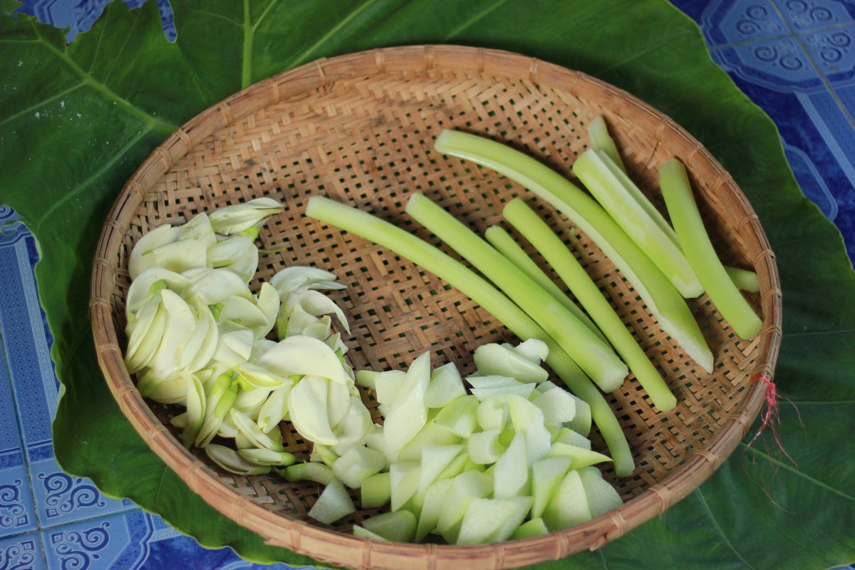 ส่วนออดิบ หรือโชนนั้น เป็นพืชหัวตระกูลเดียวกับบอน และเผือกส่วนของก้านกินดิบได้ ไม่คันเหมือนบอน ของที่บ้านดินดี ก้านเลยยาวมาก ตัดแล้วลอกเปลือกออก หั่นเป็นชิ้นพอคำ