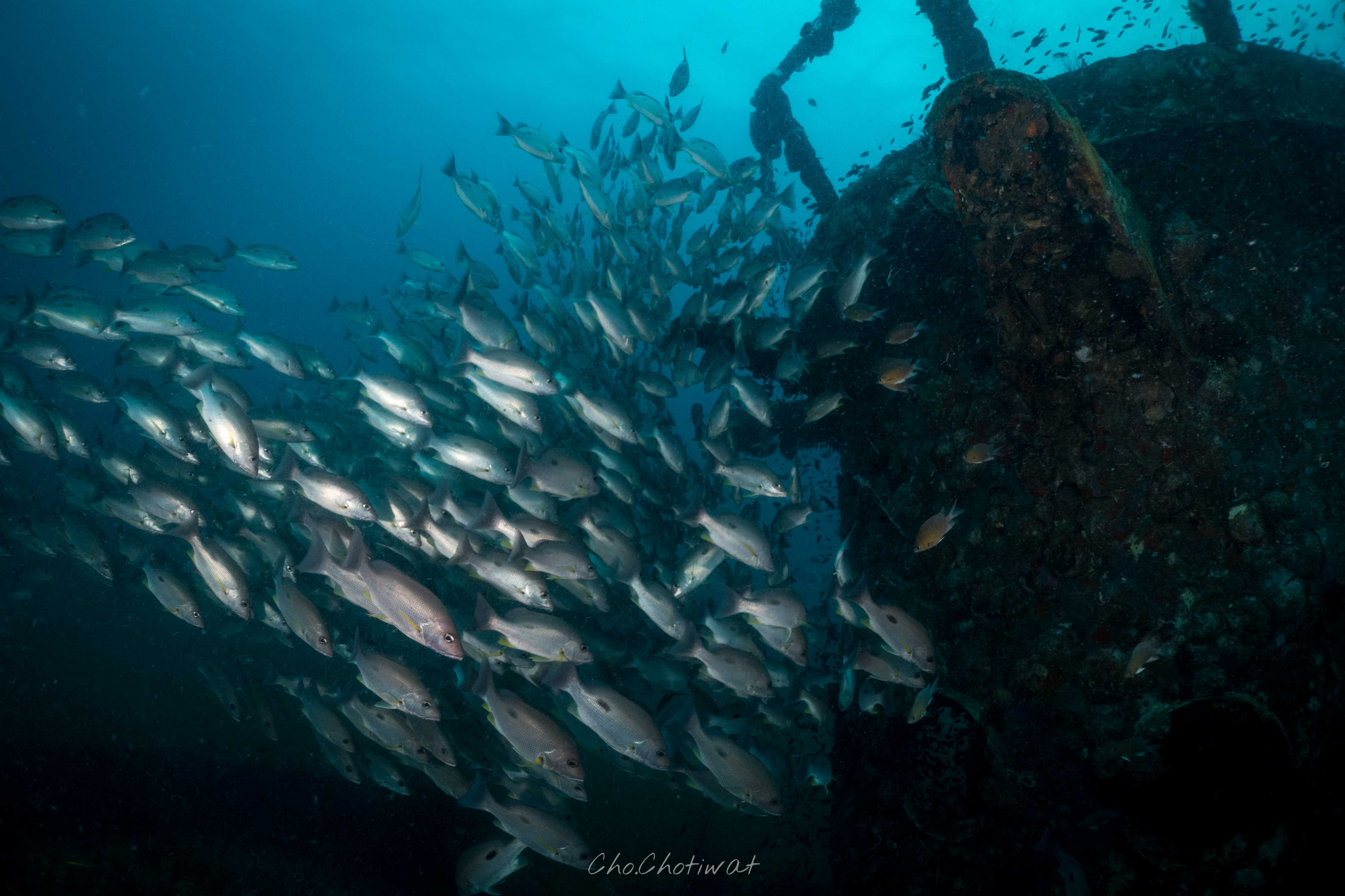 มีจุดที่เป็นเรือจมด้วยย ปกติจะมีปลาหมอทะเลล ตัวเท่าถัง แต่ถ่ายไม่ทัน ว่ายหนีไปก่อนน