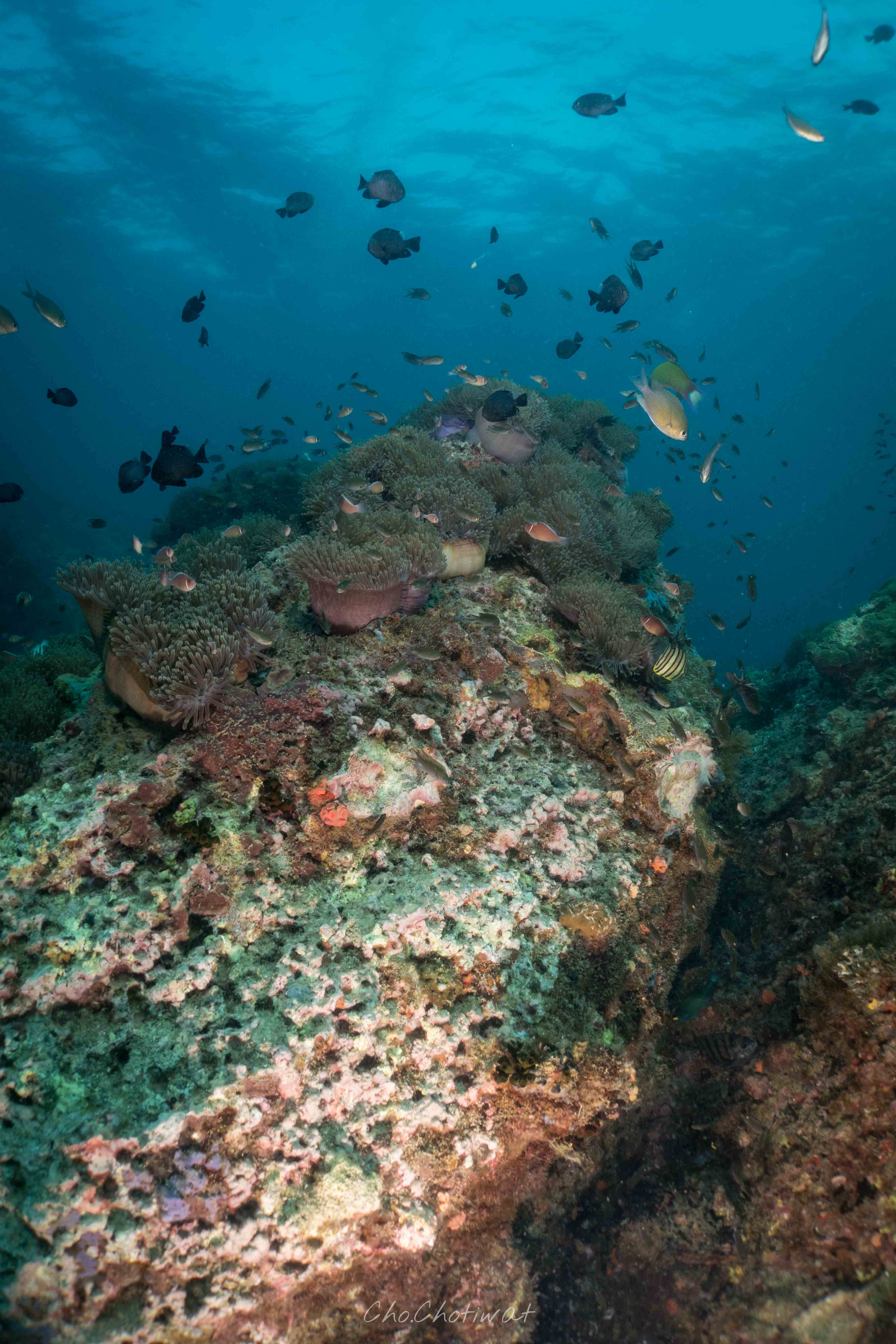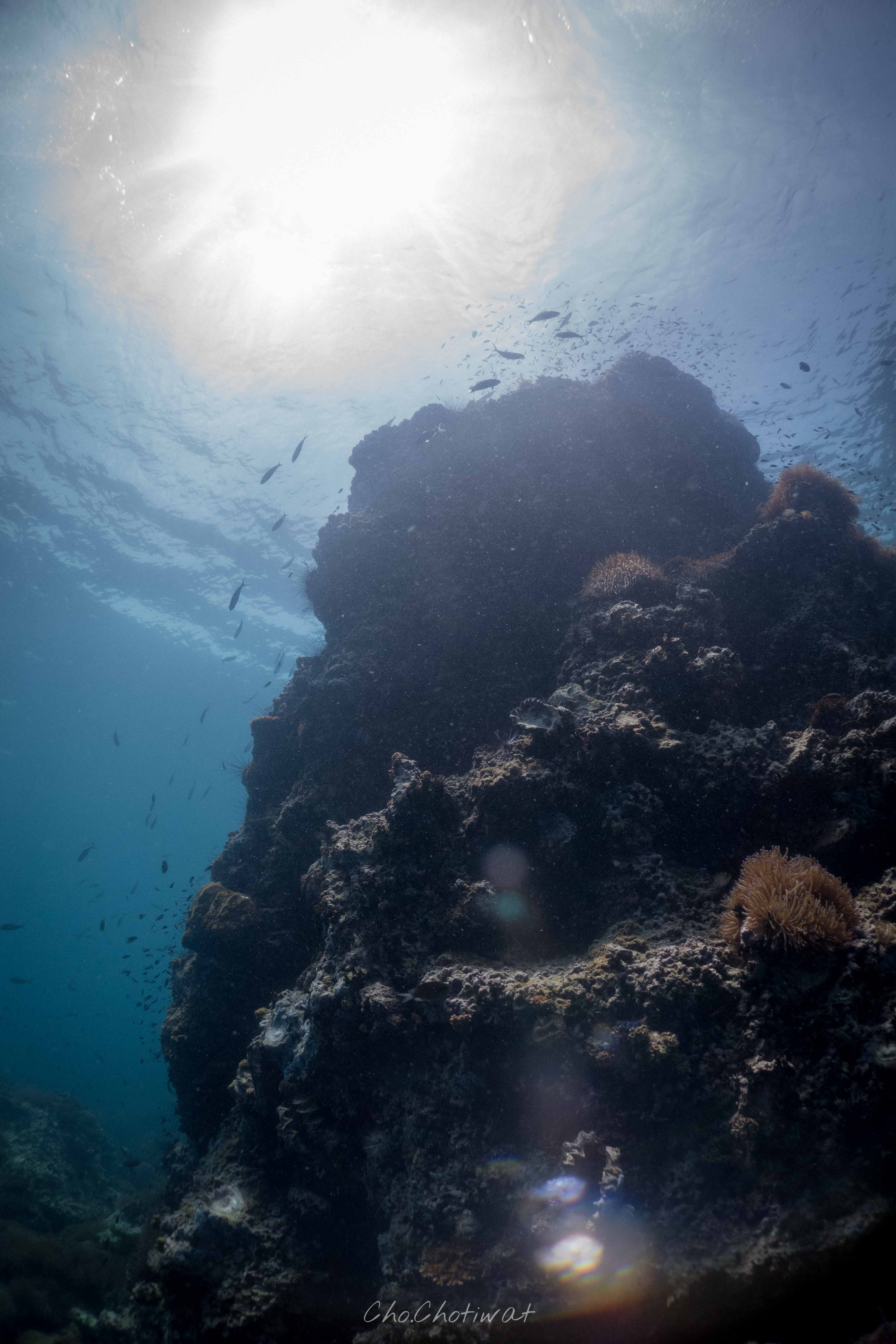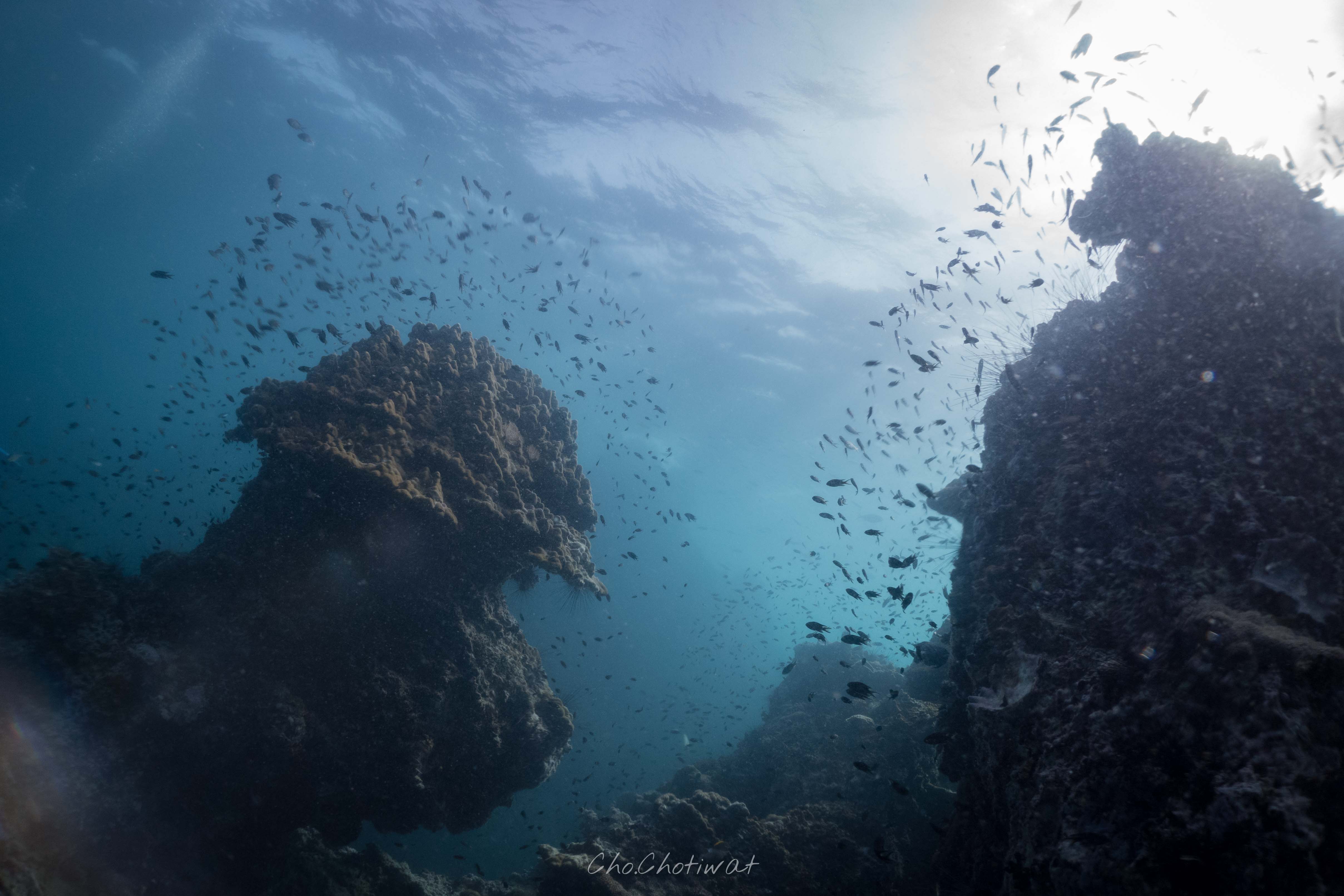 จุดที่ผมชอบที่สุดในความคิดผมนะ หินแพเลย มันดูอุดมสมบูรณ์มาก ฝูงปลาเยอะ อีกอย่าง ผมเจอน้องจุดของเราที่นี่แหละ โคตรตื่นเต้นอะ ดำมาเข้าปีที่ 4 ละพึ่งจะเคยเจอ สมัยนี้คนเรียน open water บางทีก็เจอละโชคดีสุดๆ แต่เคยมีครูคนนึงเค้าบอกผมนะ ว่าถ้าเราเจอไวอะ มันจะไม่อิน ไม่อินความยากในการล่ามัน 555+ เอาจริงมันก็คือคำปลอบใจของคนที่ยังไม่เจอ แต่ผมผ่านจุดนั้นมาละ แต่เสียดายรูปไม่ค่อยสวยอะ ตื่นเต้น มาไว ไปไว