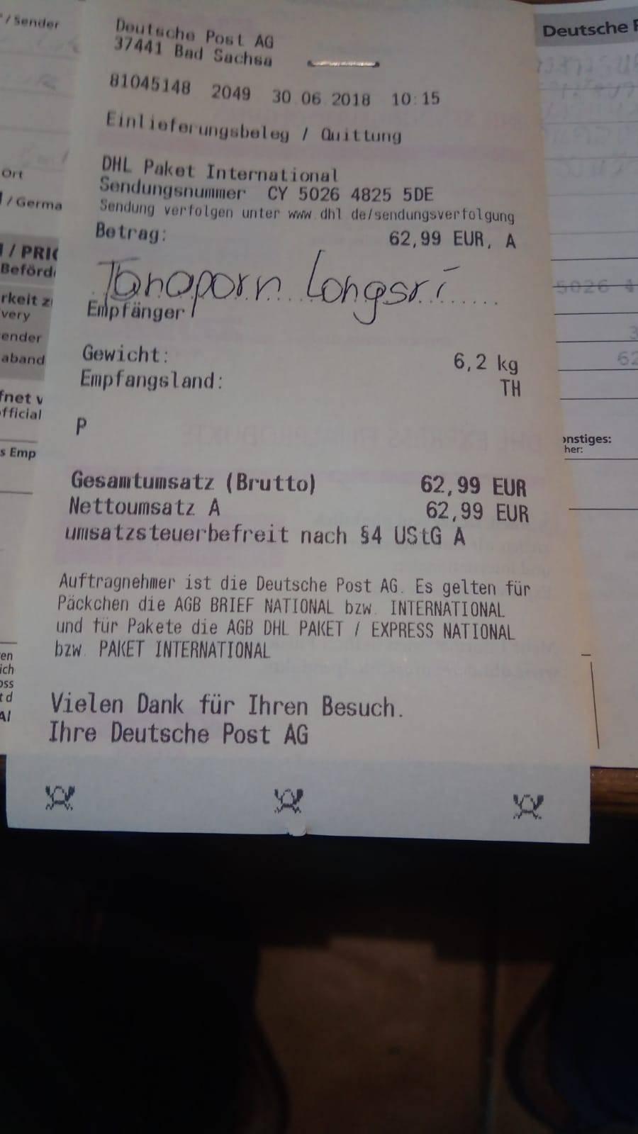 อยากสอบถามการเช็คพัสดุที่ส่งจากประเทศเยอรมัน
