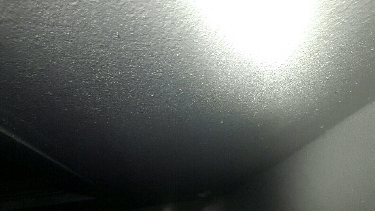 ทีแรกไม่ได้สังเกตุ แต่พอดี อยู่ๆก็นึกอยากเดินดูสี เลยไปลูบๆดู เอ๋ ทำไมเป็นสากๆมือ ทีแรกนึกว่าเป็นเพาะผนังอาจมีเม็ดทราย แต่มาลูบๆดูพร้อมคิดละเอียดอีกครั้ง เอ๊ะนี่มันไม่น่าจะใช่เม็ดทรายปูนฉาบ เพราะตอนยังไม่ทาสี มันก็เรียบดีอยู่ ก็เลยลองใช้ไฟฉายส่อง ปรากฎว่าเป็นแบบในภาพ