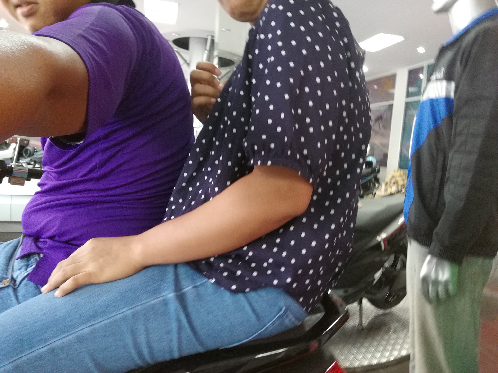 ผมกับแฟนไปลองนั่งซ้อนกันที่โชว์รูมยามาฮ่า