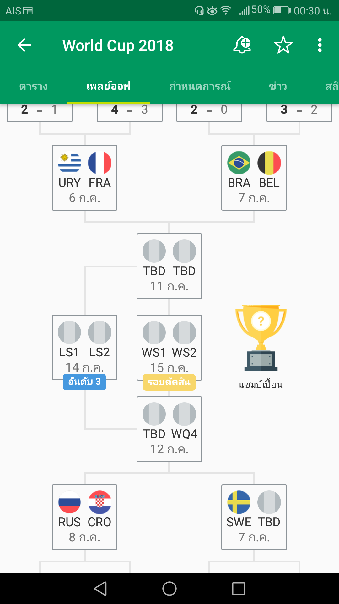 อยากเห็นแชมป์โลกหน้าใหม่....ว่ามะ และอยากเห็นเบลเยี่ยมเป็นแชมป์โลก แบบชนะทุกเกมใน 90 นาที