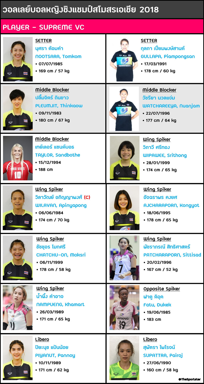 ### รายชื่อนักกีฬา "สโมสรวอลเลย์บอล สุพรีม ชลบุรี-อี.เทค." พร้อมรายละเอียด ###