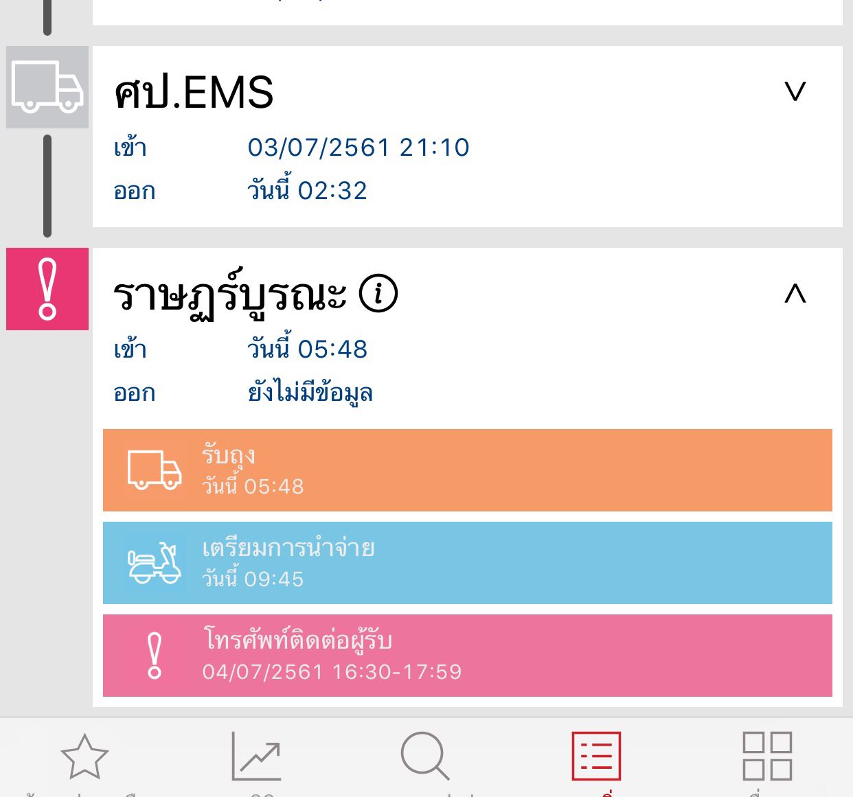 ขึ้นสถานะตามในรูปเลยค่ะ เราต้องไปรับที่ปณ หรือจะมาส่งวันต่อไปคะ