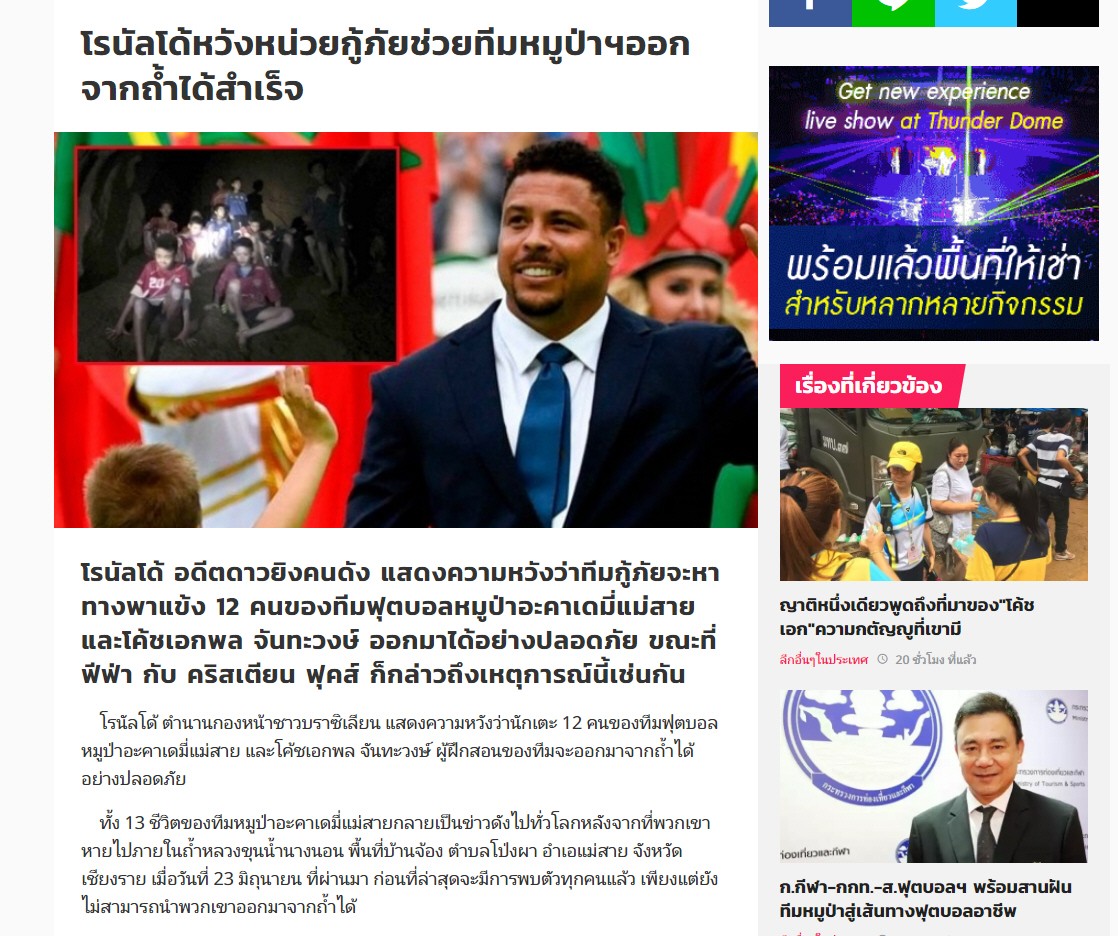 ...........โรนัลโด้หวังหน่วยกู้ภัยช่วยทีมหมูป่าฯออกจากถ้ำได้สำเร็จ...............
