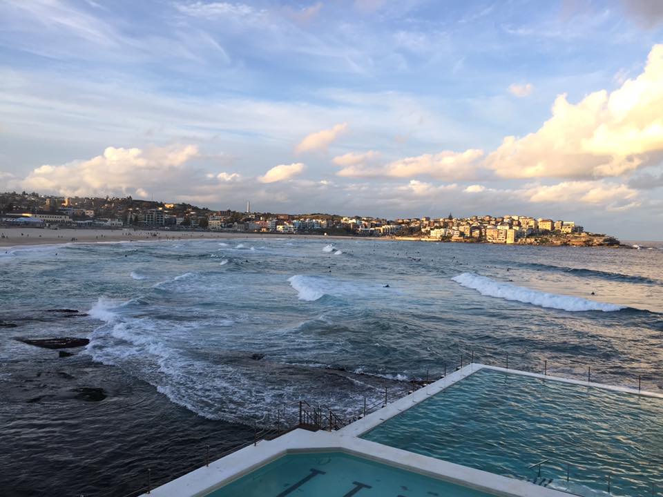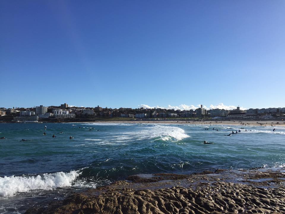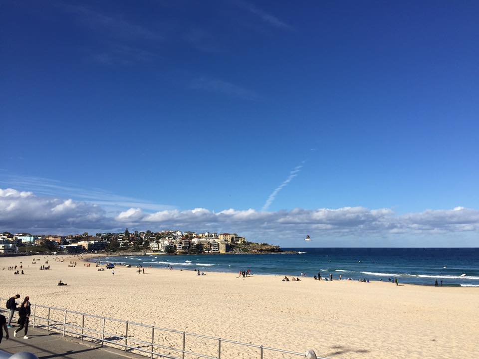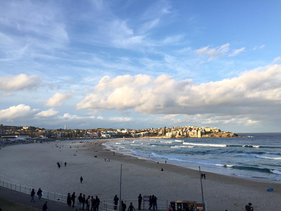 วันนี้จะชิวๆ เลยไป Bondi beach การเดินทางก็ง่ายๆอีกแล้ว เราเดินไปขึ้นบัสที่ Hype park บัสเบอร์ 333 ก็นั่งไปเรื่อยๆจนเห็นทะเลอ่ะ ประมาณ 20 นาทีได้ คนอาบแดดก็จะไม่ค่อยมีเพราะมันหนาววว