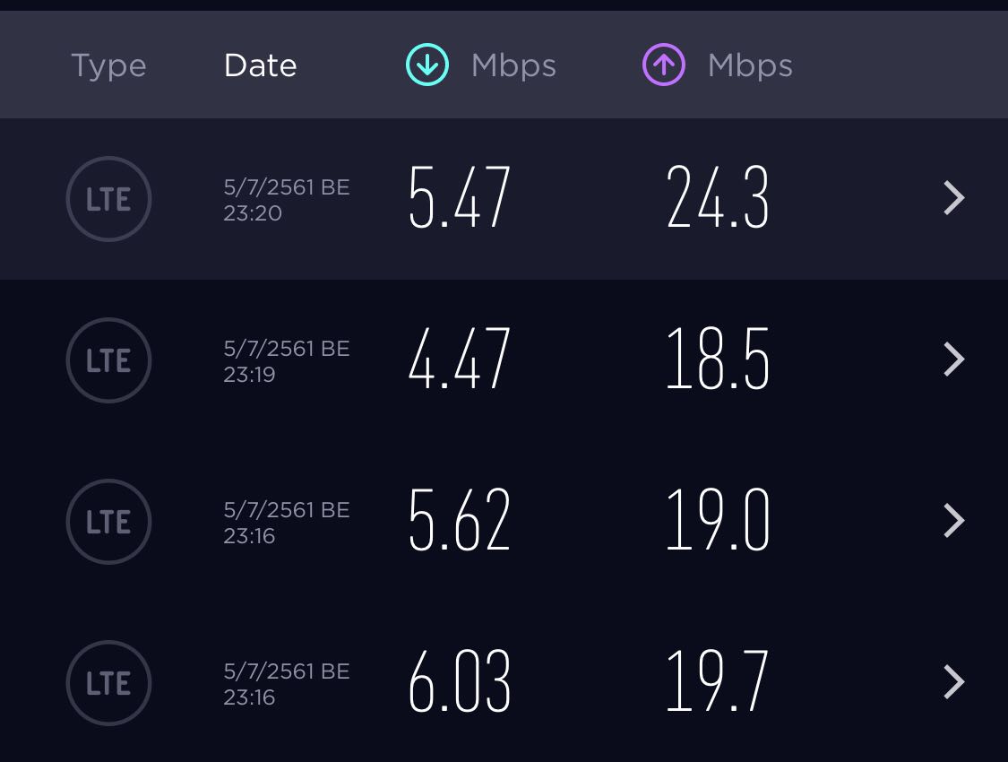 ปกติ Scan หา AIS 4G ไม่เคยเจอบนถนน ลาดพร้าว และ รามคำแหง และเมื่อเช้าก็พยายามค้นหา ก็ยังไม่เจอ ตกเย็นเลิกงานกลับห้อง หยิบมือถือกะว่าจะโทรคุยกับพ่อ แม่ มี 4G ซะงั้น ส่วน Speed Test อาจจะไม่สูงลิ่ว แต่ถ