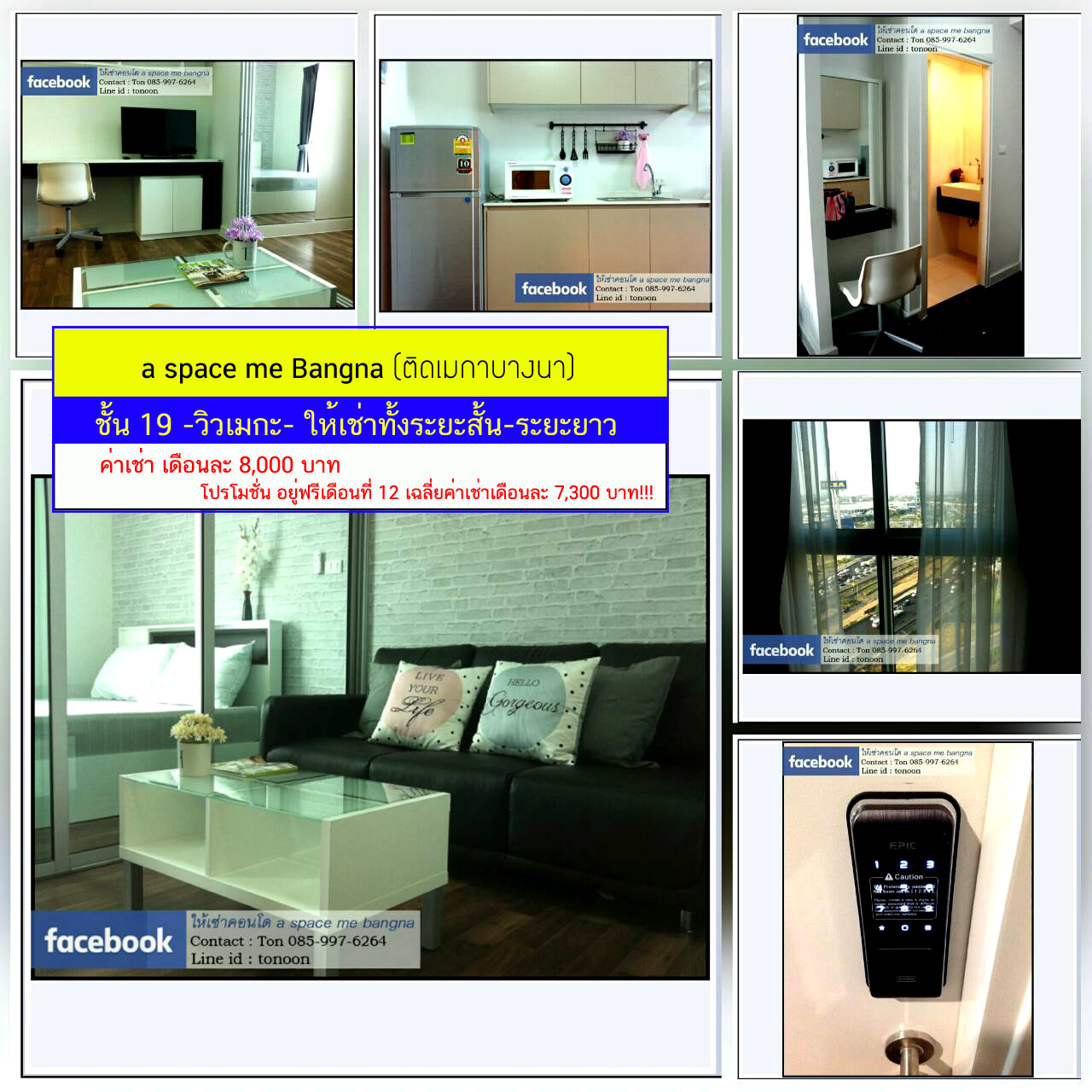 ให้เช่าคอนโดบางนา เอ สเปซ มี บางนา a space ME Bangna(ติดเมกาบางนา) ชั้น 19 ห้อง Wallลายอิฐเทา (ติดเมกะบางนา)***สระว่ายน้ำบนดาดฟ้า***ประตูดิจิตอล*** ให้เช่าทั้งระยะสั้นและระยะยาวค่ะ