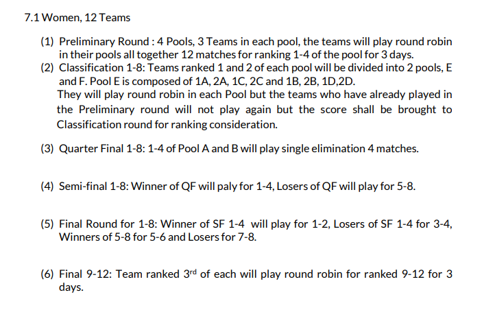 ฝ่ายหญิงที่จัดเป็น 2 สาย สายA 5 ทีม และสาย B 6 ทีม.. ผมเดาว่าน่าจะเอาสายละ 4 ทีมเข้ารอบ แล้วไขว้สายน็อคเอาท์