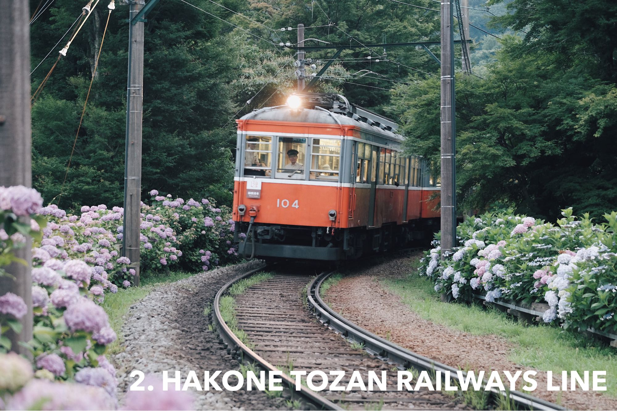 ตั้งแต่ช่วงกลางเดือนมิถุนายน - กรกฎาคม รถไฟสายคลาสสิค ที่วิ่งขึ้น - ลงภูเขา ระหว่าง สถานีโอดะวะระ (Odawara) และ สถานีโงระ (Gora) อย่าง “ฮาโกเนะ โทซัง” จะเปลี่ยนชื่อเฉพาะกิจไปเป็น “รถไฟไฮเดรนเยีย” (Hydrangea Train) เพราะตลอดสองข้างทาง ล้วนเต็มไปด้วยไฮเดรนเยีย ซึ่งกำลังบานสะพรั่งกันอย่างเต็มที่ บรรยากาศระหว่างที่รถไฟค่อย ๆ วิ่งไปนั้น คือ ความชิลล์ขั้นสุดและดีงามมากจริง ๆ ครับ
