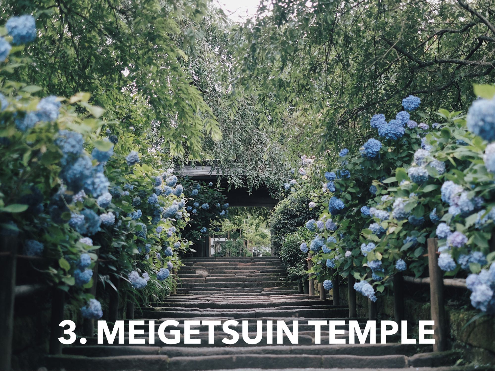 วัดเมอิเกะซึอิน เป็นวัดเก่าแก่ในพระพุทธศาสนา นิกายเซน (Zen) สำนักรินไซ (Rinzai) ในปัจจุบัน เป็นที่รู้จักกันในหมู่นักท่องเที่ยว ด้วยชื่อ “อะจิไซเดระ” (Ajisai - Dera) หรือ วัดไฮเดรนเยีย (Hydrangea Temple) เพราะในช่วงเดือนมิถุนายน ไฮเดรนเยียสีฟ้าจะเบ่งบานพร้อมกันภายในวัดอย่างสวยงาม โดยเฉพาะสองฝั่งทางเดินบริเวณประตูทางเข้าด้านหน้า ถือเป็นจุดไฮไลท์ที่ใคร ๆ ก็ต้องมาถ่ายรูปกลับไปกันทั้งนั้น