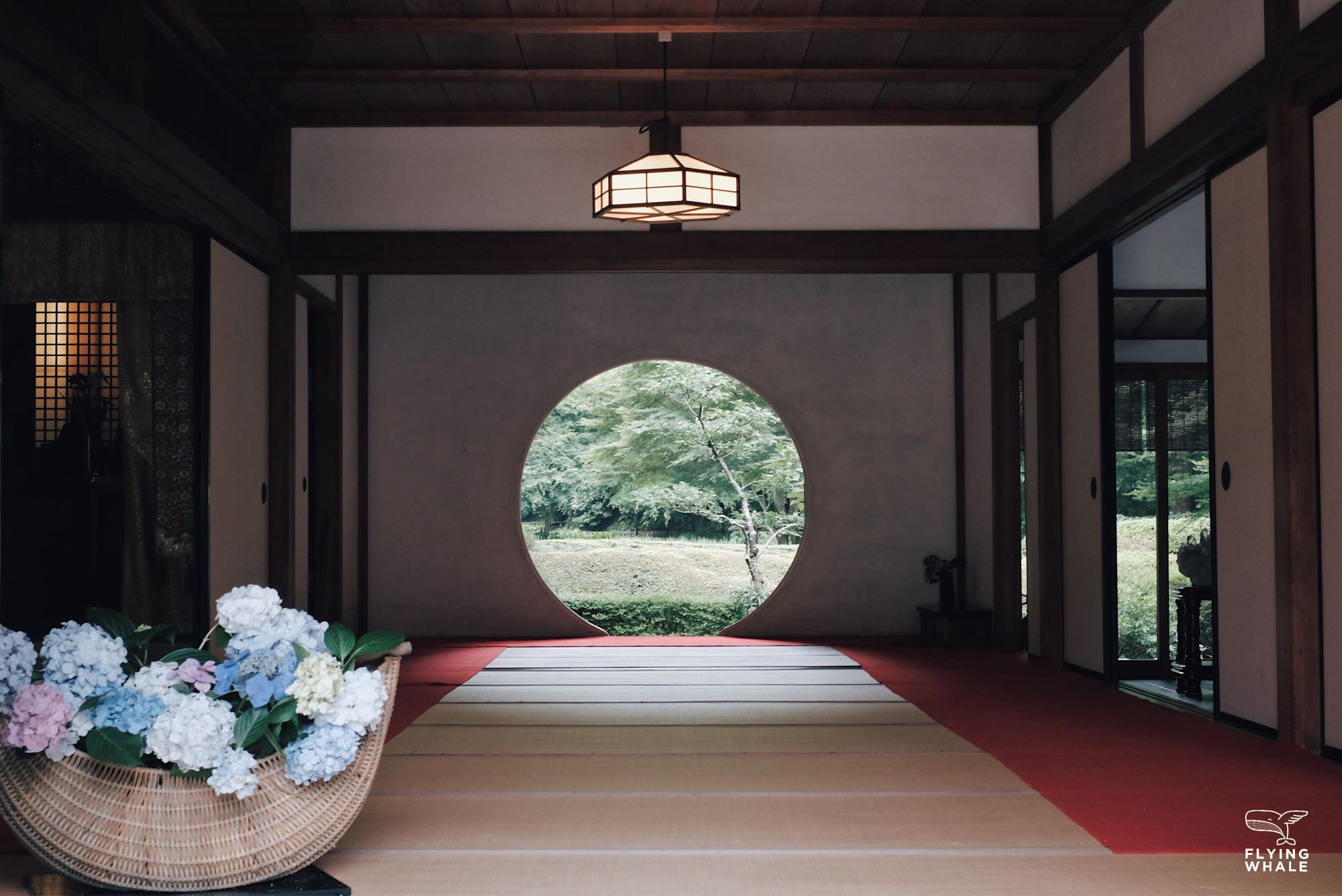 นอกจาก ไฮเดรนเยียแล้ว อีกสิ่งหนึ่งที่ห้ามพลาดเลย ก็คือ อาคารด้านหลังของวัด หรือ ห้องโถงหลัก ซึ่งมีจุดเด่นอยู่ที่ การออกแบบภายในให้มี “หน้าต่างรูปวงกลม” อันงดงาม และแปลกตา ที่สามารถมองทะลุไปถึงสวนส่วนในได้ วาฬขอย้ำว่าองค์ประกอบทั้งหมดสวยงามมากจริง ๆ ยังไงก็ต้องแวะไปชมกันให้ได้นะครับ