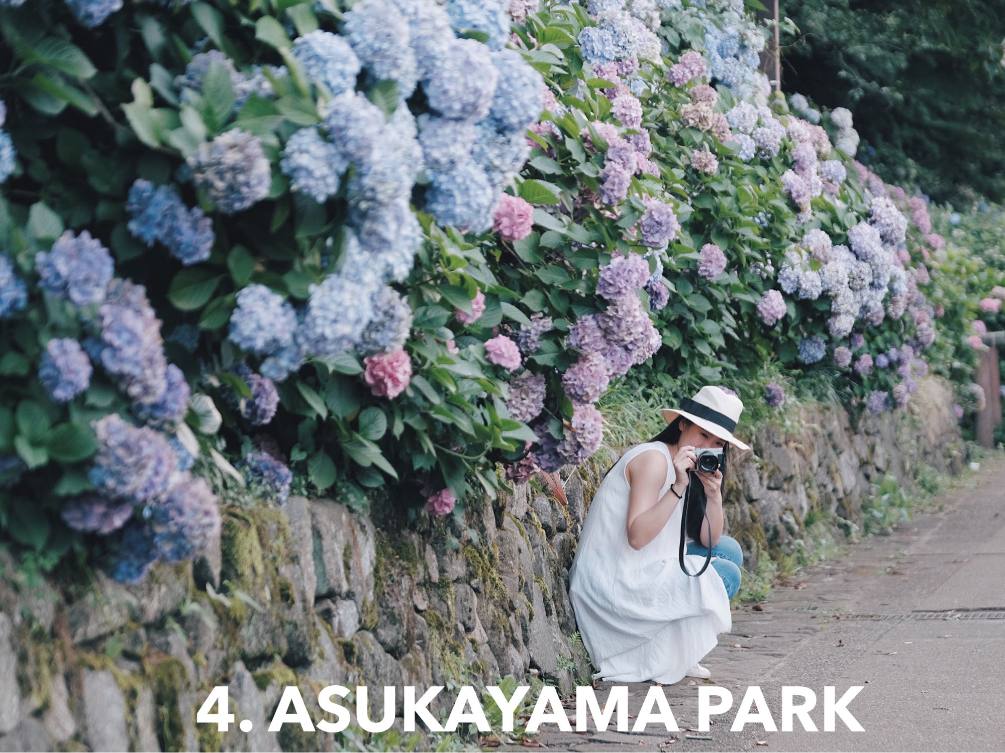 นอกจากสวนแห่งนี้ จะมีชื่อเสียงในฐานะที่เป็นหนึ่งในแหล่งดูซากุระชื่อดังและเก่าแก่ของโตเกียวแล้ว ในเดือนมิถุนายน ยังมีไฮเดรนเยียบานสะพรั่งอย่างสวยงามกว่า 1,300 ต้น ให้ได้ชมกันอีกด้วย โดยจะอยู่บริเวณด้านทิศตะวันออกของสวนอะสุกะยะมะ มีลักษณะเป็นทางเดินเล็ก ๆ เลียบไปตามรางรถไฟของสถานีโอจิ ส่วนตัวแล้ววาฬชอบที่นี่เป็นพิเศษเลยครับ เพราะทั้งสวย ทั้งเดินทางสะดวกมาก ๆ (อยู่ในโตเกียวเลย) แถมยังเข้าชมฟรีอีกด้วยฮะ