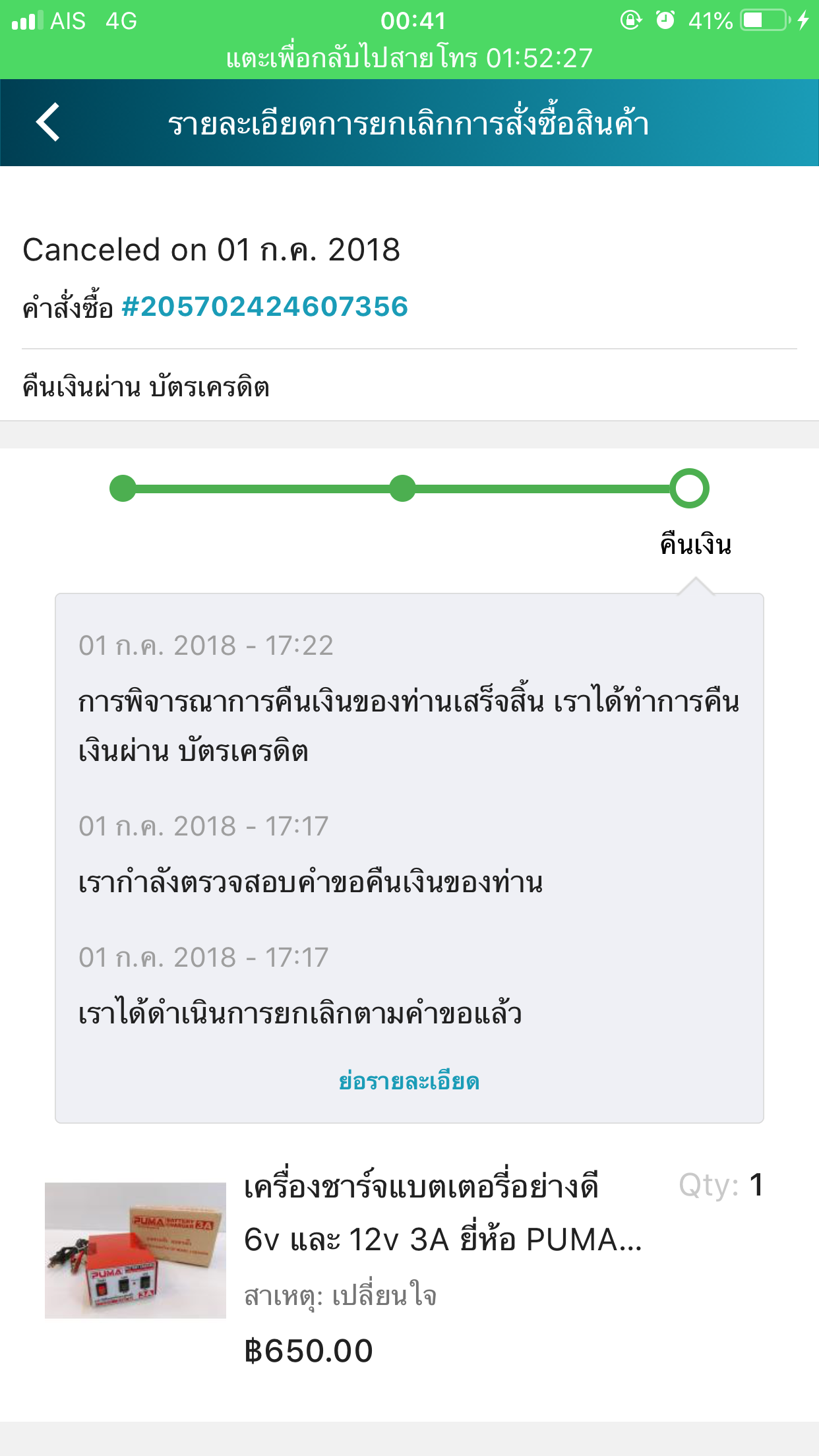 ขึ้นข้อความแบบนี้คือ คืนเงินแล้วรึยังครับ ยังไม่มีเงินเข้าเลย