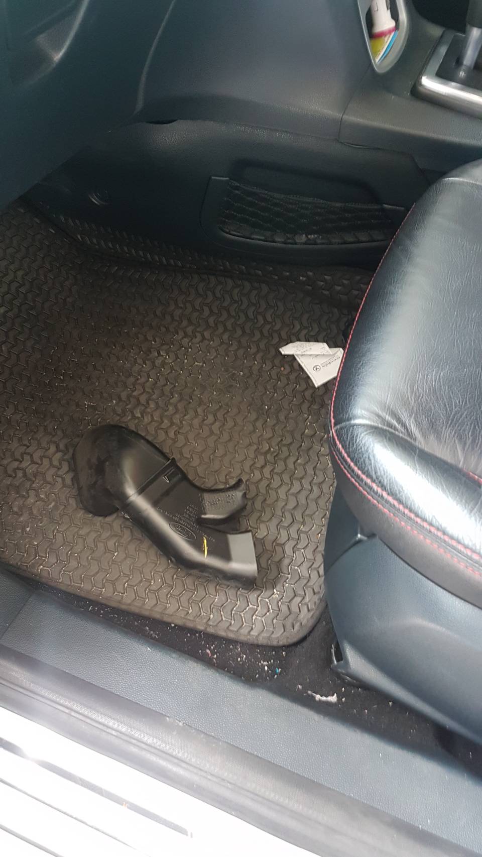 สวัสดีค่ะ พอดีขับรถปีนไปบนฟุตบาททางซ้ายตอนเลี้ยวรถออกจากซอยค่ะ พบว่ามีชิ้นส่วนหลุดออกมา 2 ชิ้น เป็นสี่เหลี่ยมๆ และมีจุกยางๆ ด้วย 5 ตัว ไม่ทราบว่ามันคือส่วนไหนเห