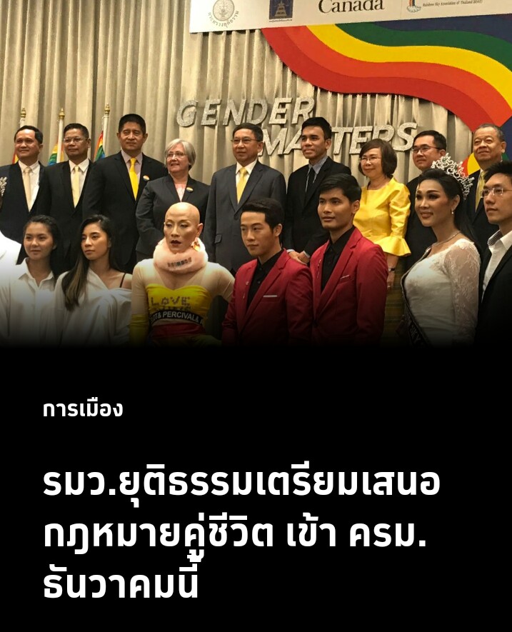รัฐมนตรีว่าการกระทรวงยุติธรรม ชูหลักสิทธิความเท่าเทียมของคนหลากหลายทางเพศ เผยเตรียมเสนอกฎหมายการจดทะเบียนคู่ชีวิตเข้าสู่คณะรัฐมนตรีเดือน ธ.ค.นี้ เชื่อไทยจะเป็นประเทศแรกในเอเชียที่มี ก.ม.การจดทะเบียนคู่ชีวิต