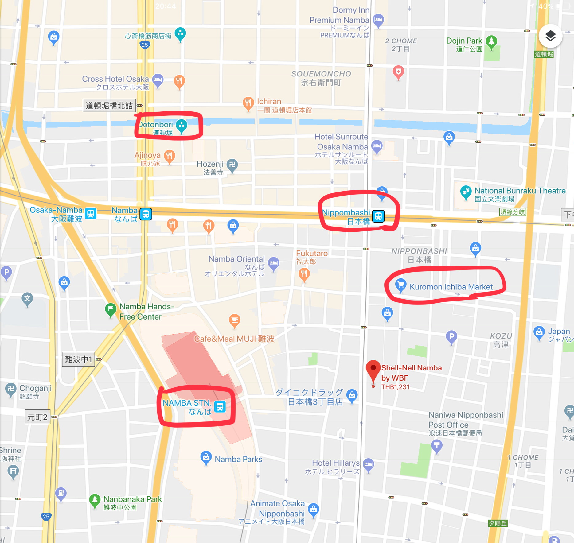 ลงสถานี Nippombashi ง่ายสุด ออกทางออกให้ถูกแล้วเดินตรงอย่างเดียวเลย