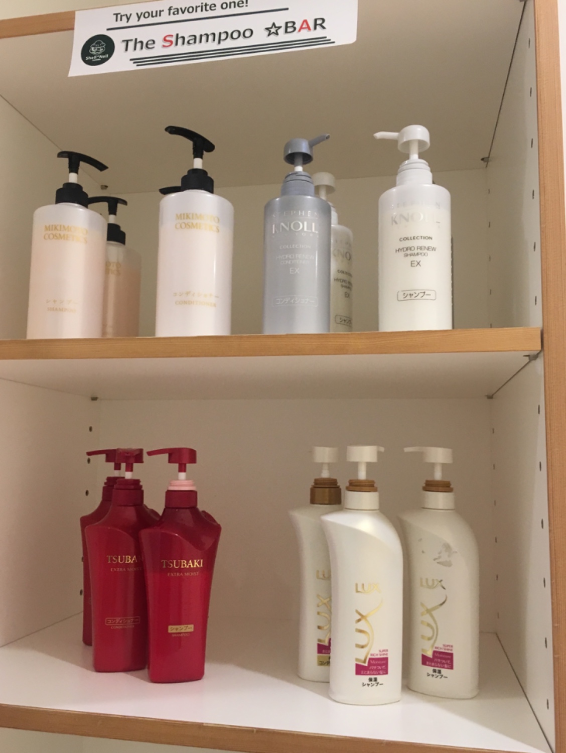 ในห้องน้ำมี Shampoo bar ให้หยิบไปใช้แล้วมาวางคืน ก็จะมีให้เลือกหลายยี่ห้อ