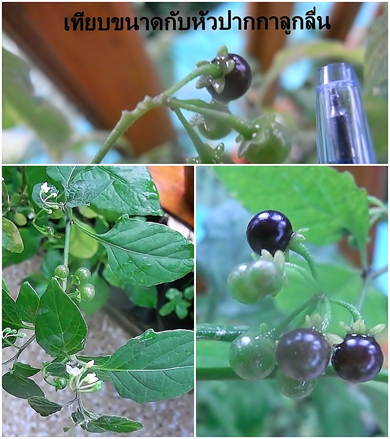 มีดอกเล็กๆสีขาว ผลเล็กมาก เทียบให้ดูกับหัวปากกาลูกลื่นค่ะ