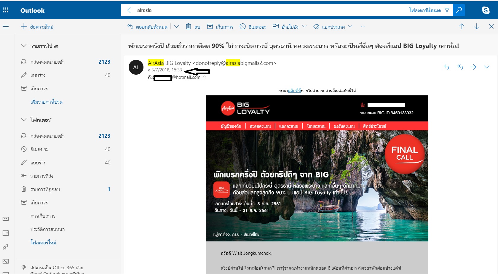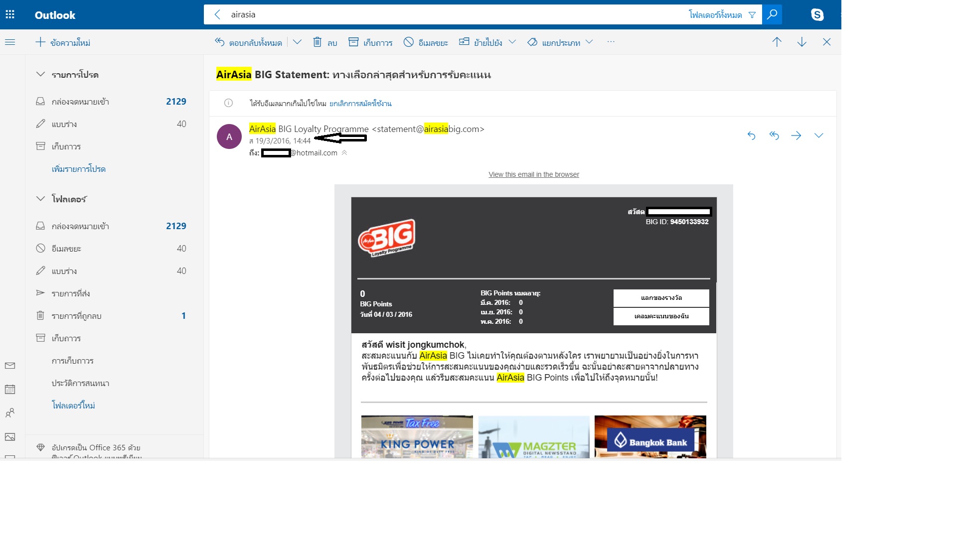 ผมเป็นสมาชิก airasia และผูกอีเมลล์ของผมที่ใช้งานประจำ มาเกือบ 4 ปี ระหว่างนี้ก็ได้อีเมลล์จาก airasia ส่งมาให้ผมตลอดที่เมลล์ผมจริงๆ (@hotmail.com) จนเมื่อวาน วันที่ 8/7/2561 เวลา 15.10 ผมก็เข้า log in ด้วยอีเมลล์ที่ใช้ประจำนี้ไม่ได้ ระบบแจ้งมาว่า มีการเปลี่ยนแปลง token bigpoint แต่เนื่องจากเย็นแล้ว เจ้าหน้าที่ไม่ทำงาน อีกทั้งเป็นวันอาทิตย์ ผมเลยรอจนถึงวันนี้ครับ ปรากฏว่าก็ยังเข้าไม่ได้ ผมเลยตัดสินใจโทรไปที่ call center airasia